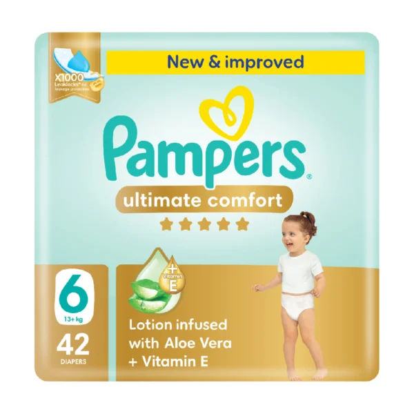 - حفاضات بامبرز راحة متكاملة الجديدة والمطورة مع الأشرطة، مقاس 6، 13+ كلغ، عبوة ضخمة، 42 قطعة