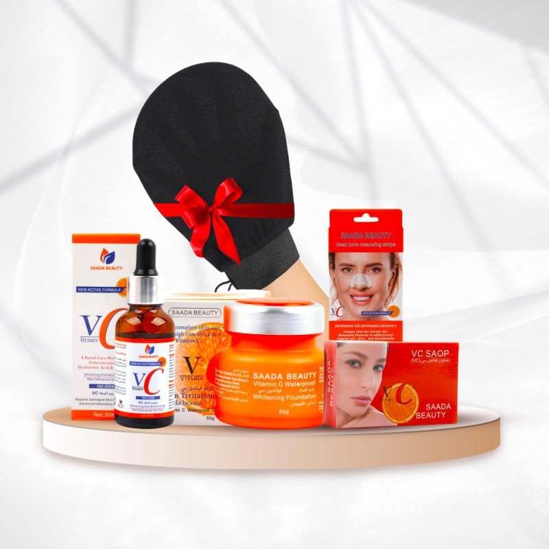 باقة فيتامين C من Saada Beauty تم اختيار منتجاتها بعناية لتجمع بين التفتيح، تصفية المسام، تنعيم البشرة، والتخلص من البقع والرؤوس السوداء.