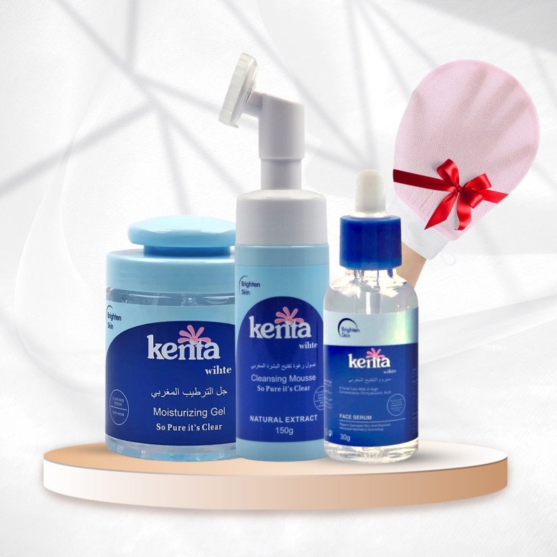 باقة كينتا للتفتيح والترطيب اليومي – سيروم + غسول + جل مرطب + ليفة كورية هدية