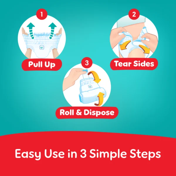 انتقل إلى حفاضات بامبرز كِلوت عند عمر 6 أشهر، عندما تجعل الزحف والتقلب الحفاضات اللاصقة صعبة الاستخدام.