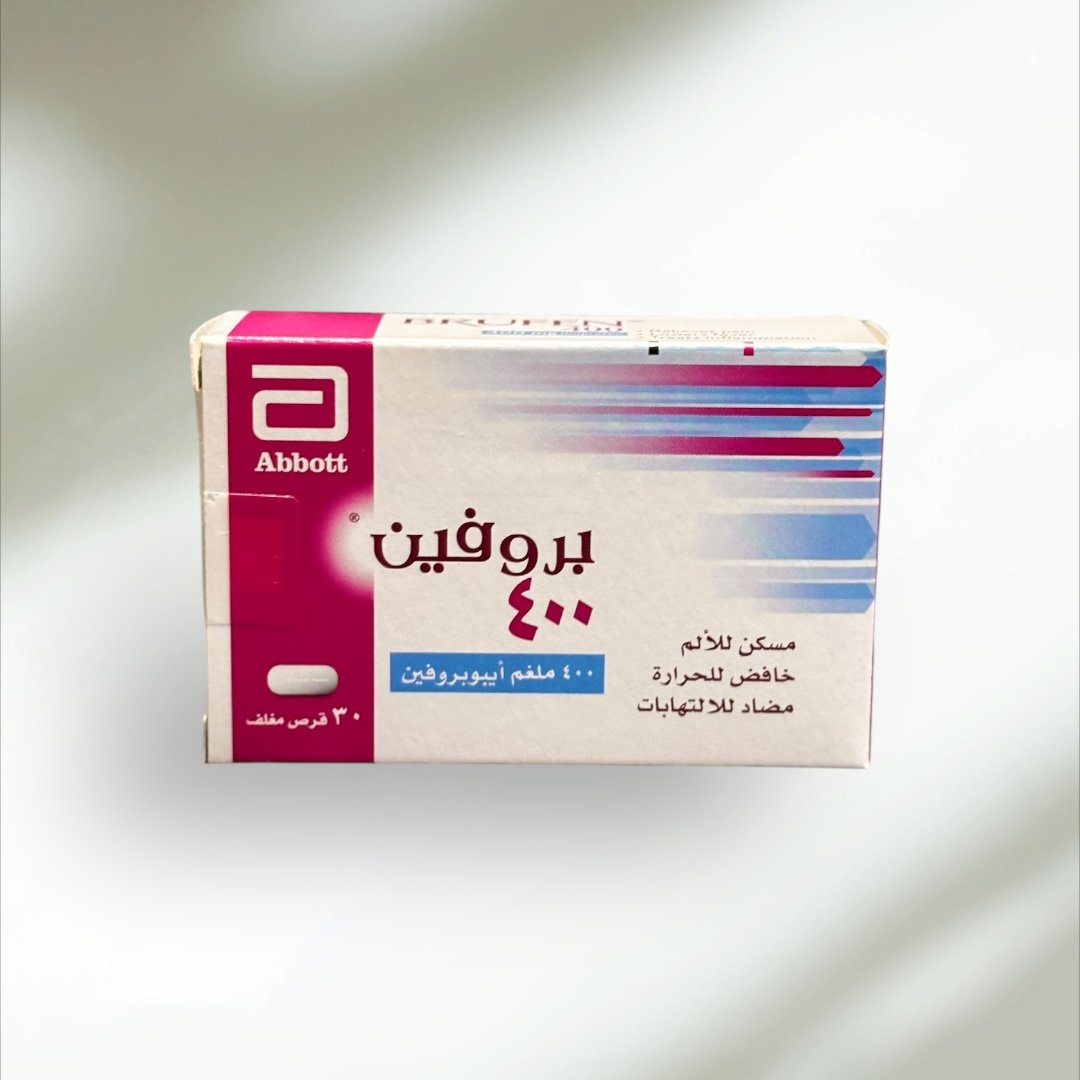 بروفين 400 ملجم هو دواء يحتوي على ايبوبروفين، يستخدم لتخفيف الآلام الخفيفة إلى المتوسطة، وخفض الحمى. يعمل عن طريق تثبيط إنتاج المواد الكيميائية التي تسبب الألم والالتهاب في الجسم.