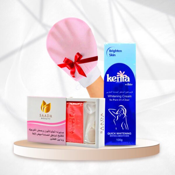 بكج العناية لتفتيح المناطق الحساسة وتوحيد اللون – كريم كينتا لتفتيح المنطقة الحساسة + صابونة الجلوتاثيون سعادة بيوتي + الليفة الكورية هدية