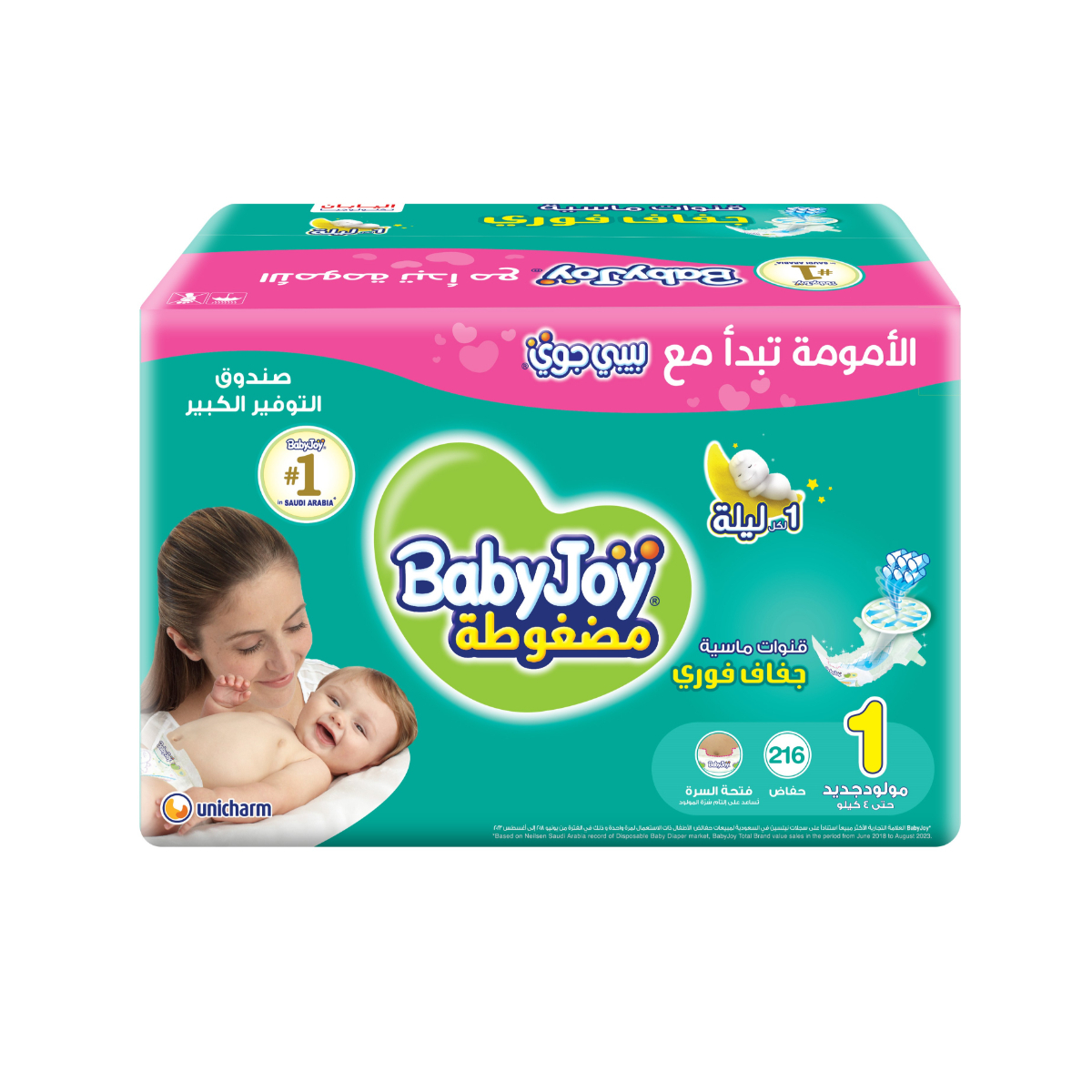 - بيبي جوي، حفاضات أطفال، مقاس 1، جامبو بوكس، حتي 4 كجم -216 قطعة