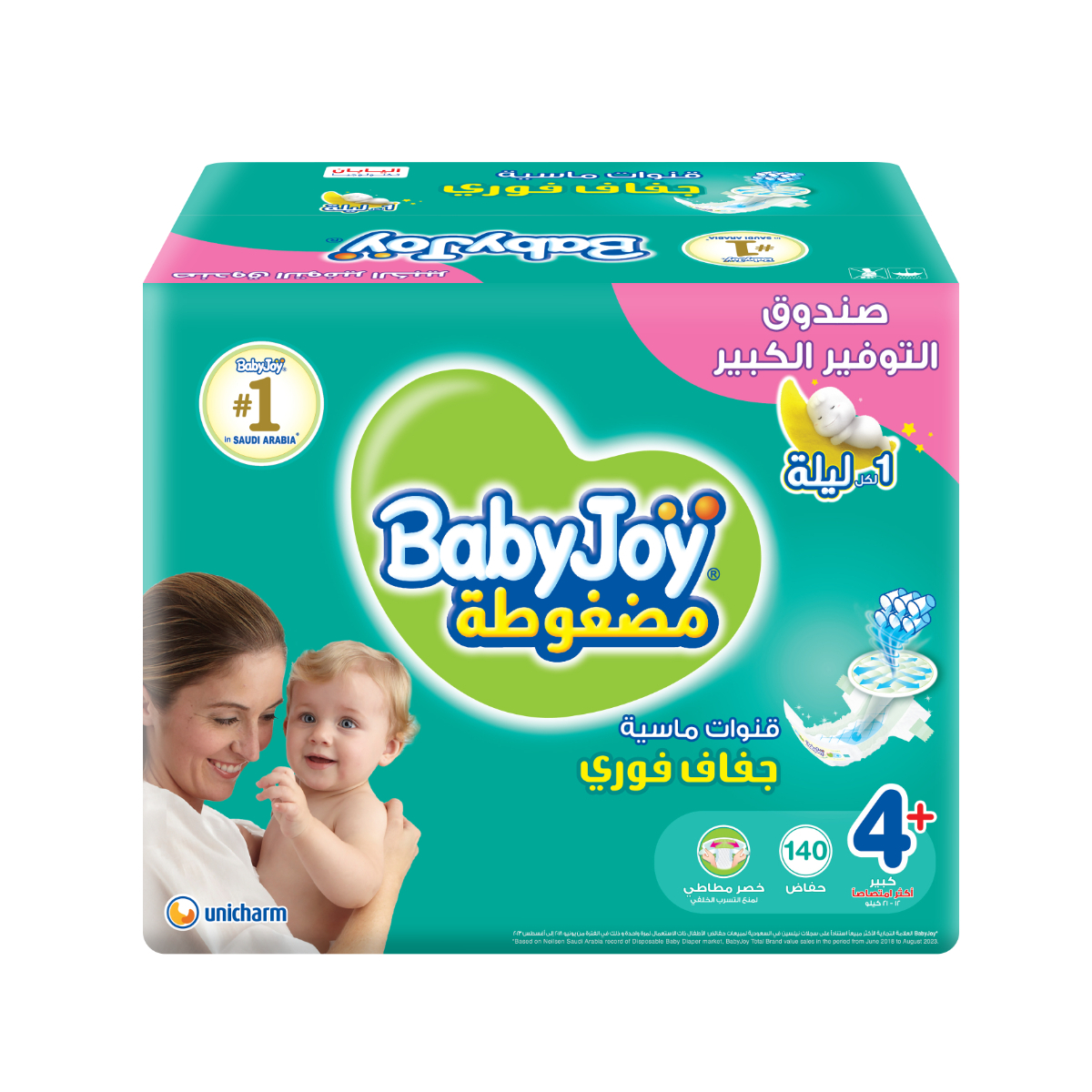 - بيبي جوي، حفاضات أطفال، مقاس 4+، جامبو بوكس، 12-21 كجم -140 قطعة