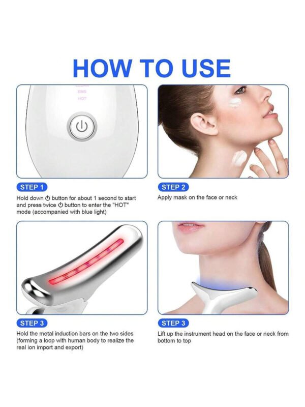 جهاز مساج بتدفق كهربائي صغير LED لشد تجاعيد الرقبة وإزالتها للعناية ببشرة الوجه