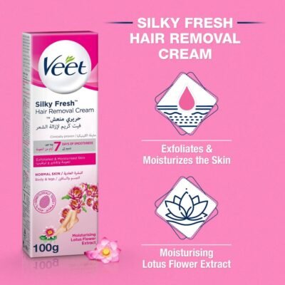 هناك العديد من الطرق لإزالة شعر الجسم غير المرغوب فيه، بدءاً من الطرق الأكثر تخصصاً مثل الخيوط إلى الحلاقة التقليدية. ومع ذلك، يمكن أن تكون الحلاقة في المنزل غير مؤلمة ولكنها قد تسبب تهيج الجلد. بالإضافة إلى ذلك، تحتاج إزالة الشعر بالليزر إلى إرشادات الخبراء لمنع تلف البشرة، وقد تكون أجهزة إزالة الشعر خيارًا مكلفًا. الآن وبدون أي فوضى، استمتعي ببشرة ناعمة كالحرير مع كريم إزالة الشعر الحريري المنعش من ڤيت. على عكس تقنيات إزالة الشعر الأخرى، تقدم لكِ ڤيت إزالة الشعر في المنزل بدون ألم واقتصادية وسهلة الاستخدام وأقل استهلاكًا للوقت وفعالة في إزالة الشعر في المنزل. يحتوي هذا الكريم على حليب اللوتس الذي يعمل على تفتيح بشرتك وإزالة الشعر الخشن في نفس الوقت، حتى لو كان قصيرًا يصل إلى 2 مم. يحتوي الكريم الذي تم اختباره من قِبل أطباء الجلدية على الصبار المهدئ وعطر زهر البنفسج لرائحة كريهة لا تدوم طويلاً. يمنحك كريم إزالة الشعر الذي يعيد نمو الشعر شعورًا أكثر نعومة مع كريم إزالة الشعر بينما يمنحك بشرة ناعمة ومرطبة لمدة تصل إلى أسبوع. أصبحت إزالة الشعر بسيطة للغاية مع فيت!