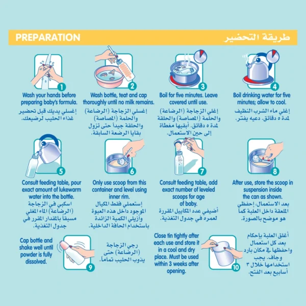 - الحفظ، الاستعمال، التحضير أو الإطعام بشكل غير صحيح قد يؤدي إلى تأثيرات سلبية على صحة طفلك.