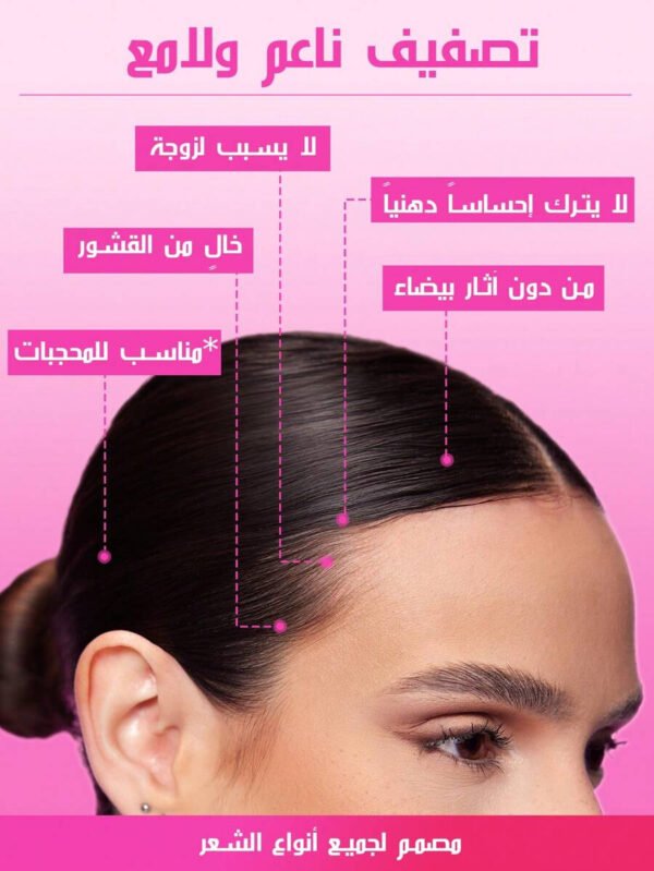 🔹 السهولة: سهل الاستخدام والتنظيف، ما يترك لزوجة أو بقايا على الشعر أو اليد.