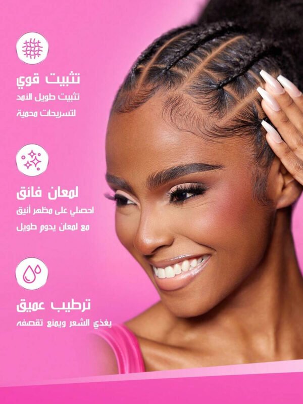🔹 الثبات: يثبت الشعر بشكل قوي ويدوم لفترة طويلة بدون ما يترك أثر أو يسبب تكتل.